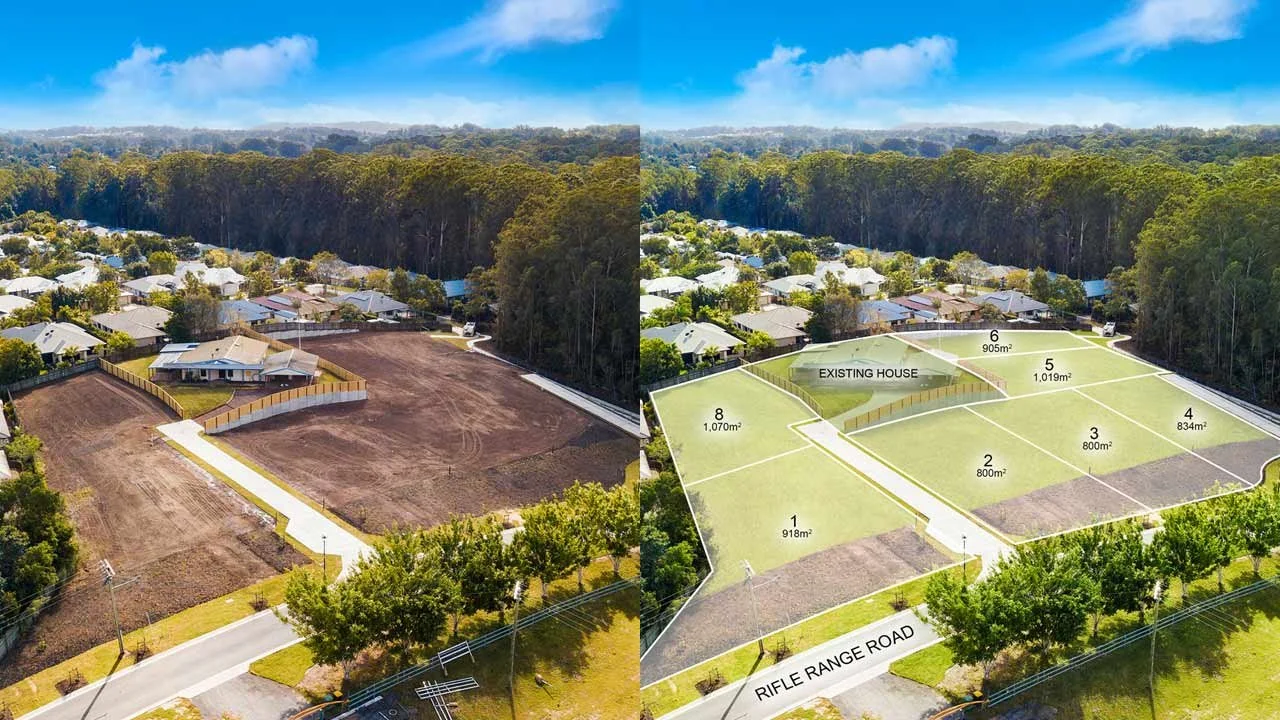 In this meticulous type of aerial editing, the property’s different portions are highlighted, such as the roads and lot boundaries.